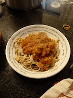 Finally the pasta was dry, and a pot of boiling water was prepared. Lenny expertly separated the pasta and hurled it into the pot. The strips danced in the water, swirling with the bubbles, cooking to perfection. Very soon the pasta was ready! Lulu grated some parmesan while Lenny served two dishes of steaming pasta with fresh tomato and basil sauce on top. When they finally sat down to eat, it had been over three hours since the baking had commenced, and Lulu and Lenny were hungry! After the first fresh and flavour-filled mouthful, the pair agreed it was definitely worth the wait! And they promptly scoffed down the lot (followed by a rather delicious apple and berry crumble... also freshly made) - of course making sure they had enough to take for lunch during the week.